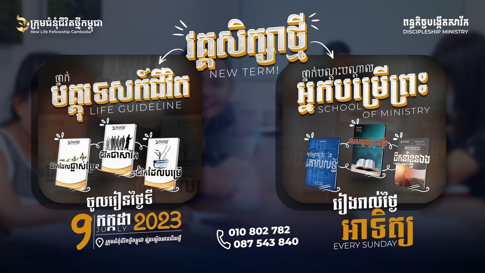 ថ្នាក់ព្រះគម្ពីរថ្ងៃអាទិត្យ នឹងចាប់ផ្ដើមវគ្គសិក្សាថ្មី ចាប់ពីថ្ងៃទី ៩ ខែ កក្កដា ឆ្នាំ ២០២៣ ខាងមុខនេះតទៅ។